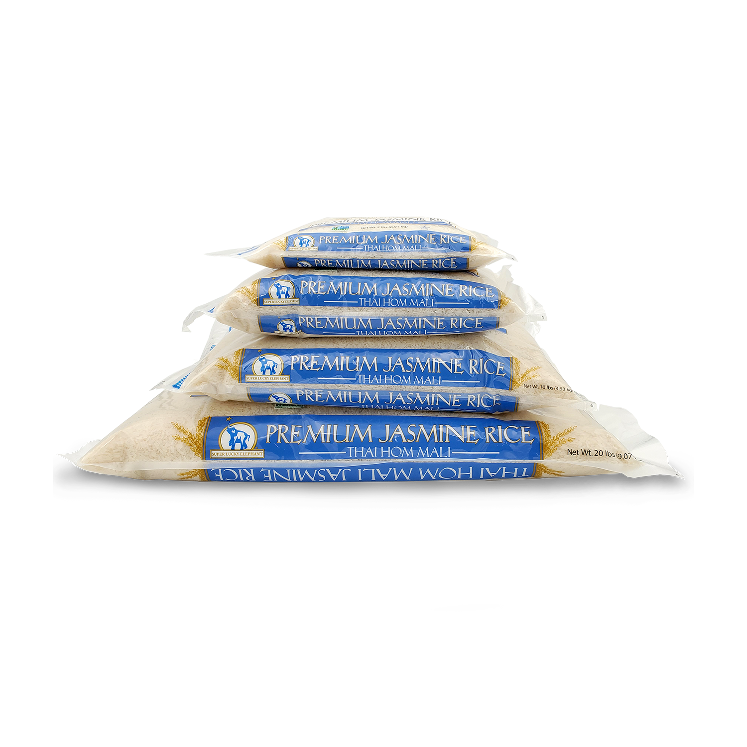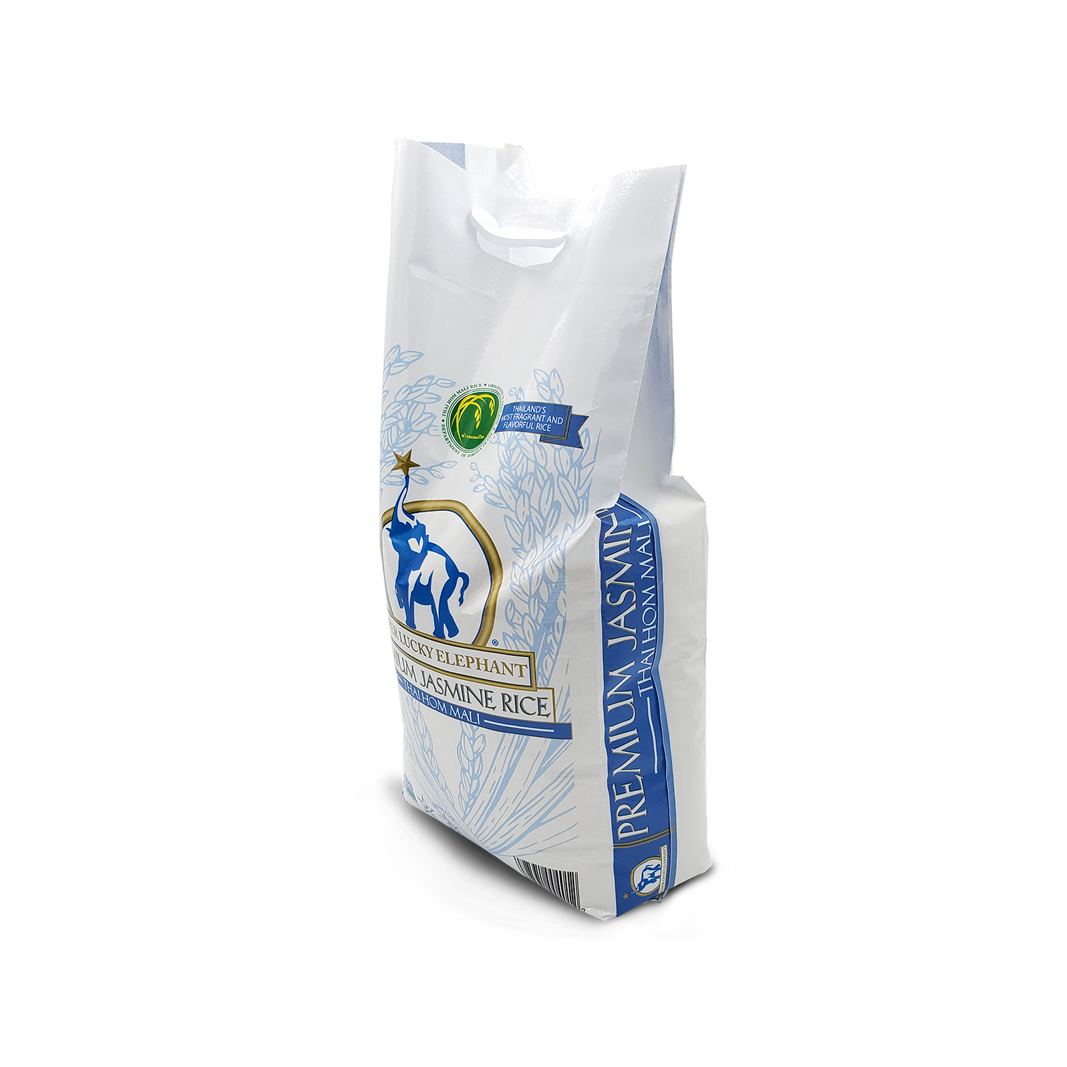 Super Lucky Elephant Thai Hom Mali Jasmine Rice is a premium Jasmine rice of the highest quality. It boasts an especially aromatic fragrance and superior quality compared to other varieties of jasmine. Sourced from the lush and fertile fields of Northeastern Thailand, this rice is one of a kind and grows only in this specific region. Thai Hom Mali is best known for its unique aromatic fragrance and sought after for its pleasing texture. All Super Lucky Elephant Thai Hom Mali Jasmine rice is certified Kosher, Non-GMO Project Verified, and carries the Thai Hom Mali Rice Certification Mark issued for genetic authenticity from Thailand’s Department of Foreign Trade.